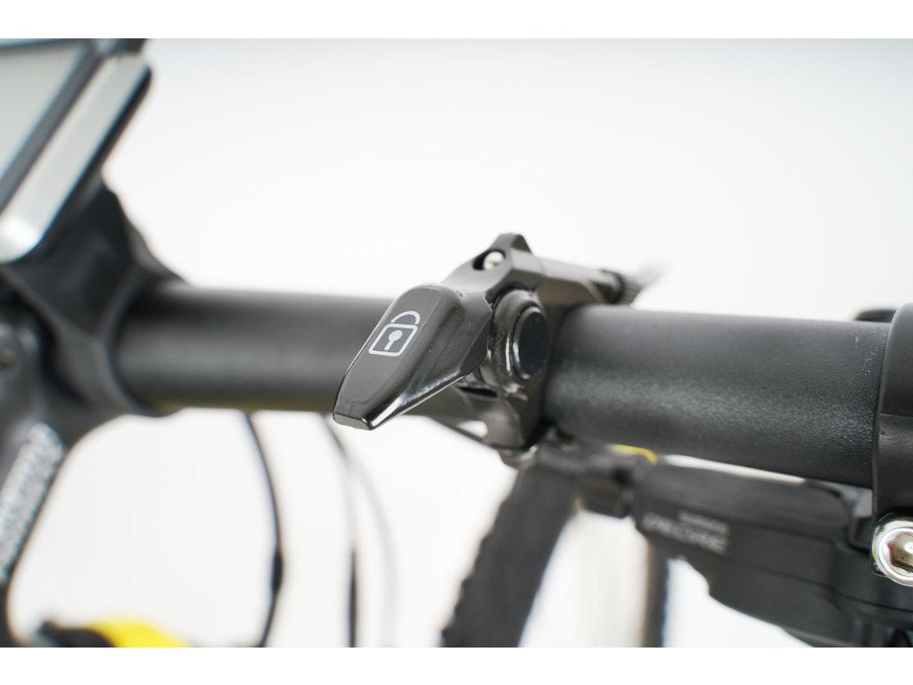 Na kierownicy znajdziemy bardzo intuicyjny i prosty w obsłudze panel sterowania. Na nim możemy wybierać z 5 stopni wspomagania w zależności od trasy i preferencji rowerzysty. Jeśli potrzebujemy wyprowadzić rower z garażu lub prowadzić go pod górkę, możemy skorzystać z funkcji walk, która włączy wspomaganie silnika do prędkości 6 km/h.