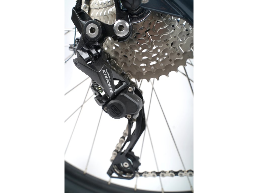 Przerzutka tylna Shimano Deore zapewnia płynną zmianę biegów. Duży zakres przełożeń – bo jest ich aż 10, pozwala na dostosowanie biegu do aktualnych warunków na trasie. Dodatkowo napęd wyposażony jest w prowadnicę łańcucha, a przerzutka w technologię Shadow RD+. Dzięki zastosowaniu funkcji sprzęgła, wózek przerzutki jest mniej podatny na pracę, co w efekcie stabilizuje łańcuch podczas intensywnej jazdy. Wyżej opisana technologia w połączeniu z prowadnicą łańcucha stanowi skuteczną ochronę przed spadaniem łańcucha nawet w trudnym terenie.