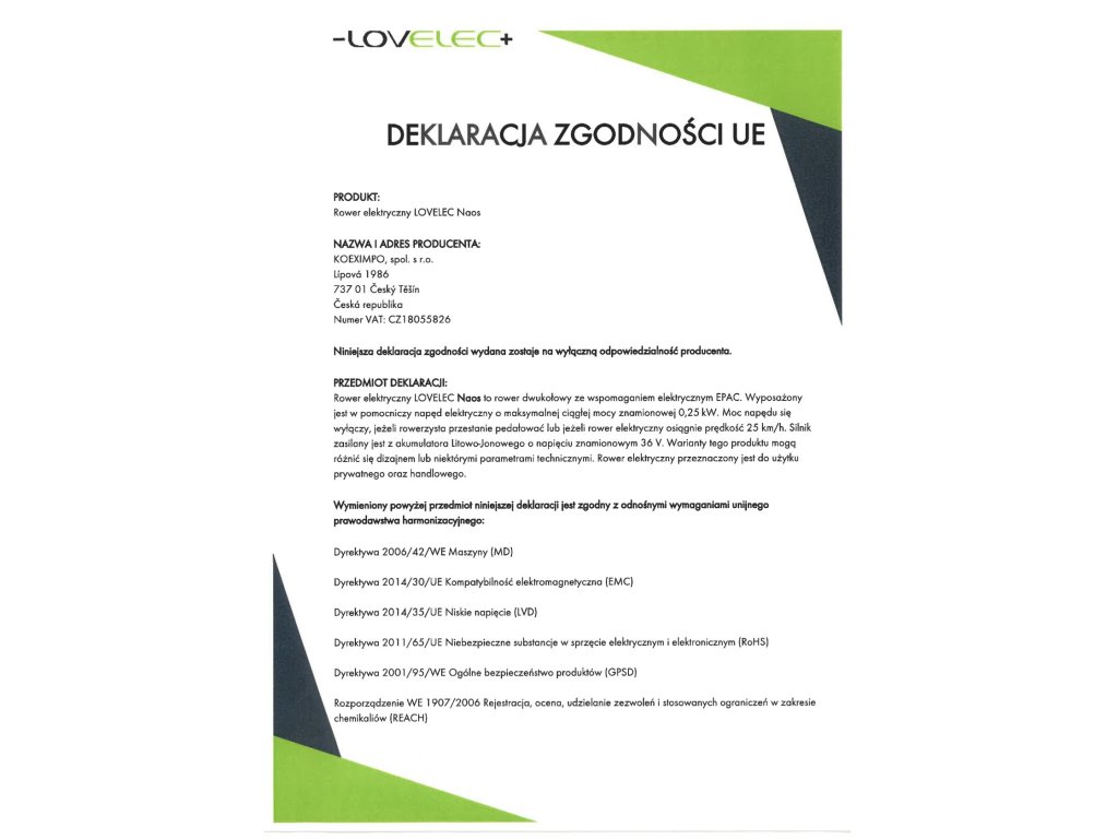 | ładowarka | EN, CE, 36 V, 2 A, czas ładowania 4–6 godzin |