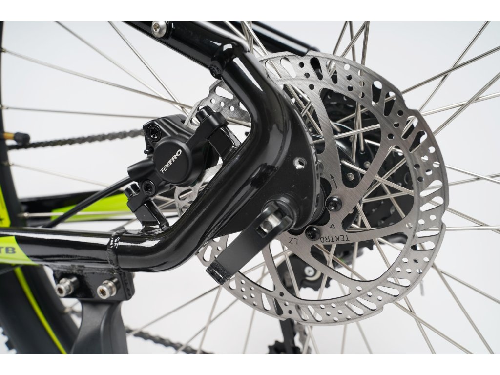 - Hamulce hydrauliczne tarczowe marki Tektro z krótką drogą hamowania.