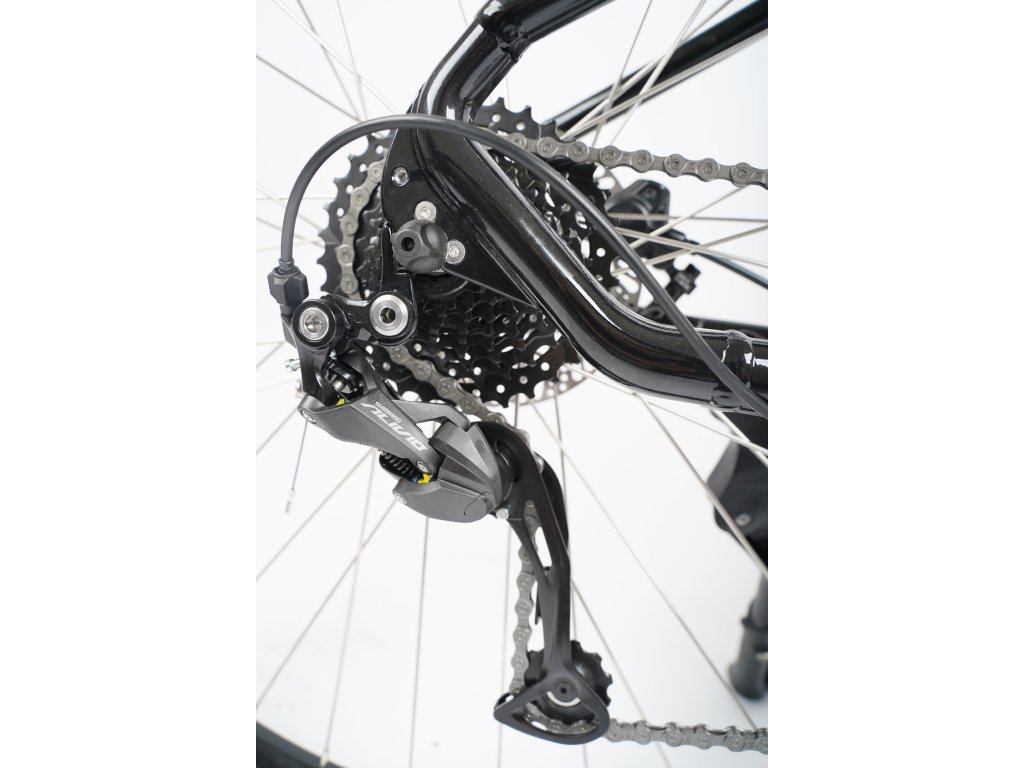 Rower elektryczny LOVELEC SARGO jest wyposażony w 9-biegową przerzutkę tylną Shimano Alivio, która pozwala na bezproblemową i szybką zmianę przełożeń w celu zwiększenia komfortu podczas jazdy.