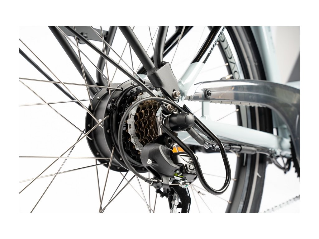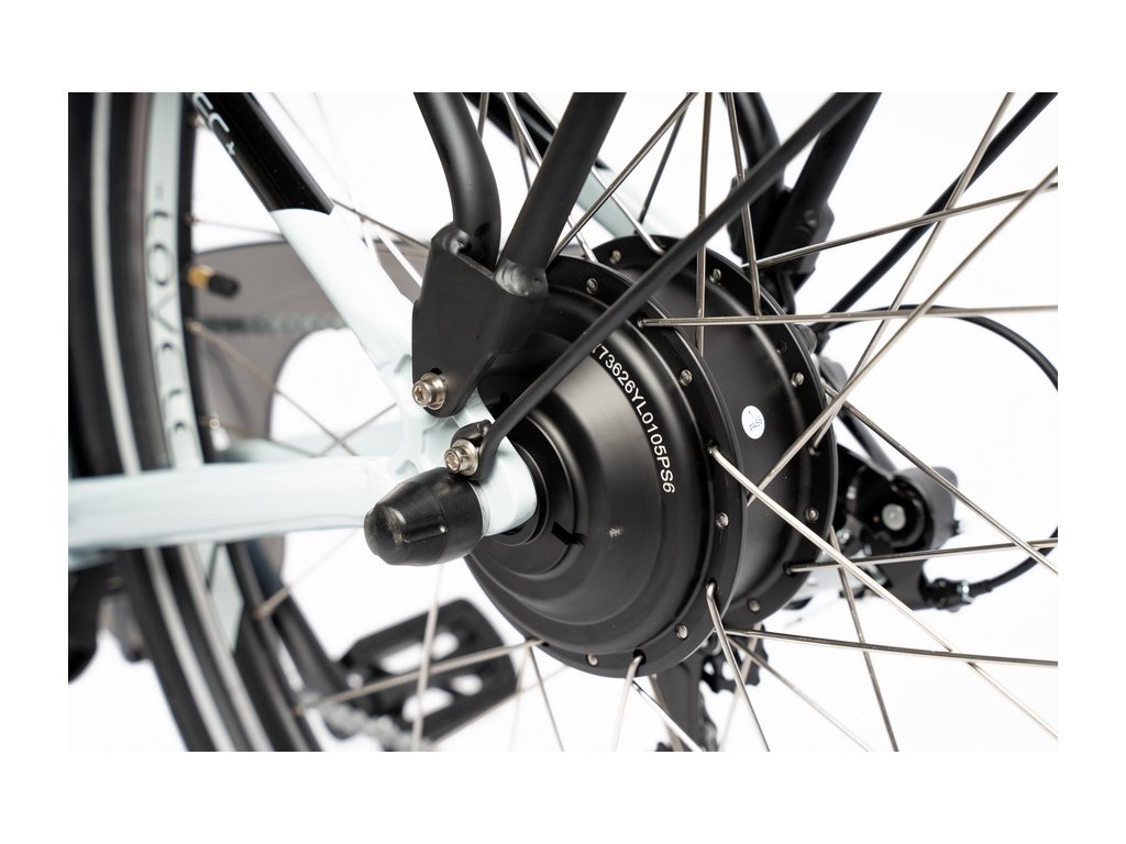 Jest napędzany tylnym silnikiem bezszczotkowym LOVELEC o mocy nominalnej 250 W i maksymalnym momencie obrotowym 45 Nm, zapewniającym wystarczającą moc, by poruszać się po miejskich ulicach szybko i sprawnie. Z tym rowerem dojazdy do pracy, sklepu i na spotkania z przyjaciółmi będą przyjemnością.