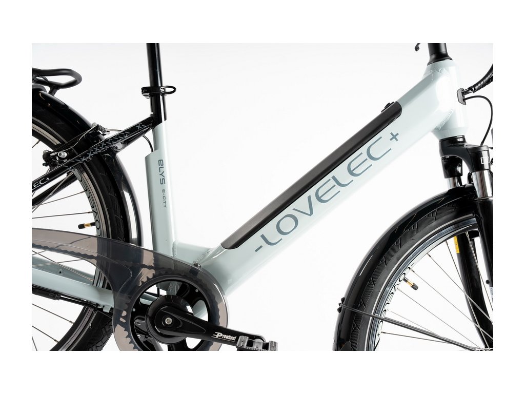 Miejski rower elektryczny LOVELEC Elys to doskonałe połączenie praktyczności i elegancji. Umożliwia szybkie i stylowe poruszanie się po mieście i pokonywanie zarówno krótkich, jak i długich dystansów. Jeśli cenisz sobie komfort i łatwość prowadzenia – model Elys będzie doskonałym kompanem na co dzień!