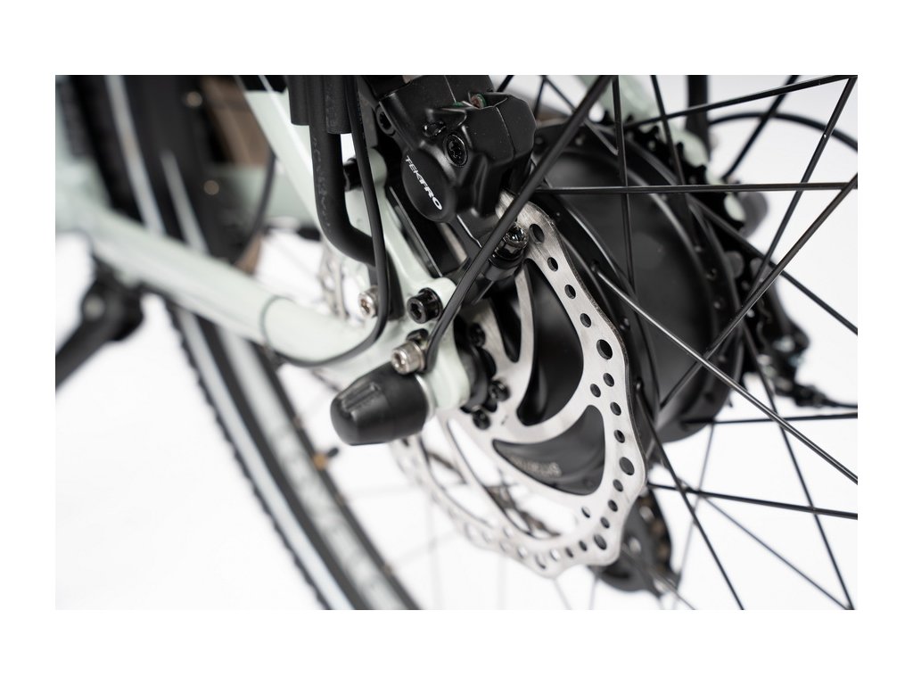 Rama roweru została zaprojektowana bardzo precyzyjnie, dzięki czemu pozwoli w komfortowej pozycji pokonywać liczne kilometry. A co więcej – oferujemy na nią dożywotnią gwarancję! Sama rama została zaprojektowana tak, żeby wsiadanie, schodzenie oraz jazda na rowerze były przyjemne i nie przysparzały problemu. Wszystko dzięki mocno opadającej górnej rurze, która pełni funkcje usztywniającą przedni trójkąt, ale jednocześnie nie stanowi dużej przeszkody przy wsiadaniu i zsiadaniu z roweru. Całkowita nośność roweru (masa rowerzysty + bagażu) wynosi 140 kg.