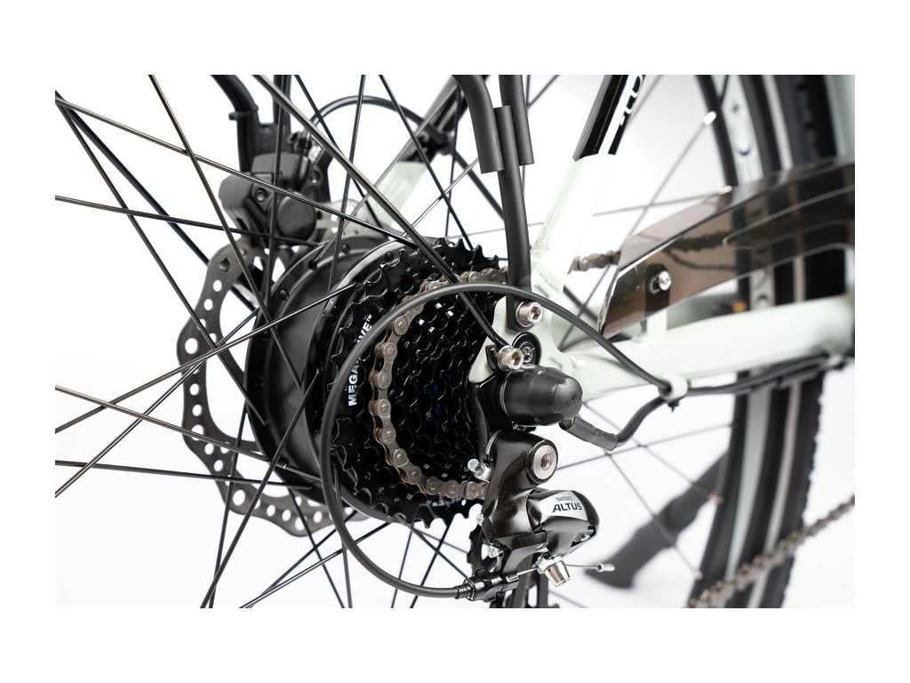 W rowerze jest zamontowana przerzutka tylna Shimano Altus umożliwiająca szybką i bezproblemową zmianę biegów oferując płynną jazdę nawet w pagórkowatym terenie. Układ napędowy ma do dyspozycji aż 8 przełożeń w zależności od potrzeb rowerzysty.