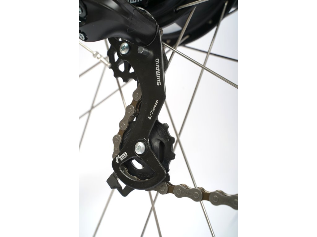 W rowerze jest zamontowana przerzutka tylna Shimano Tourney, która zapewnia płynną i bezproblemową jazdę niezależnie od warunków pogodowych. W zależności od aktualnej sytuacji można wybierać z 7 przełożeń.