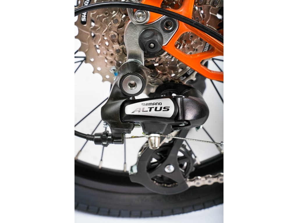 W rowerze jest zamontowana przerzutka tylna Shimano Altus zapewniająca płynną i bezproblemową jazdę w każdych warunkach. W zależności od rodzaju trasy i preferencji rowerzysty, można wybierać z 8 przełożeń.