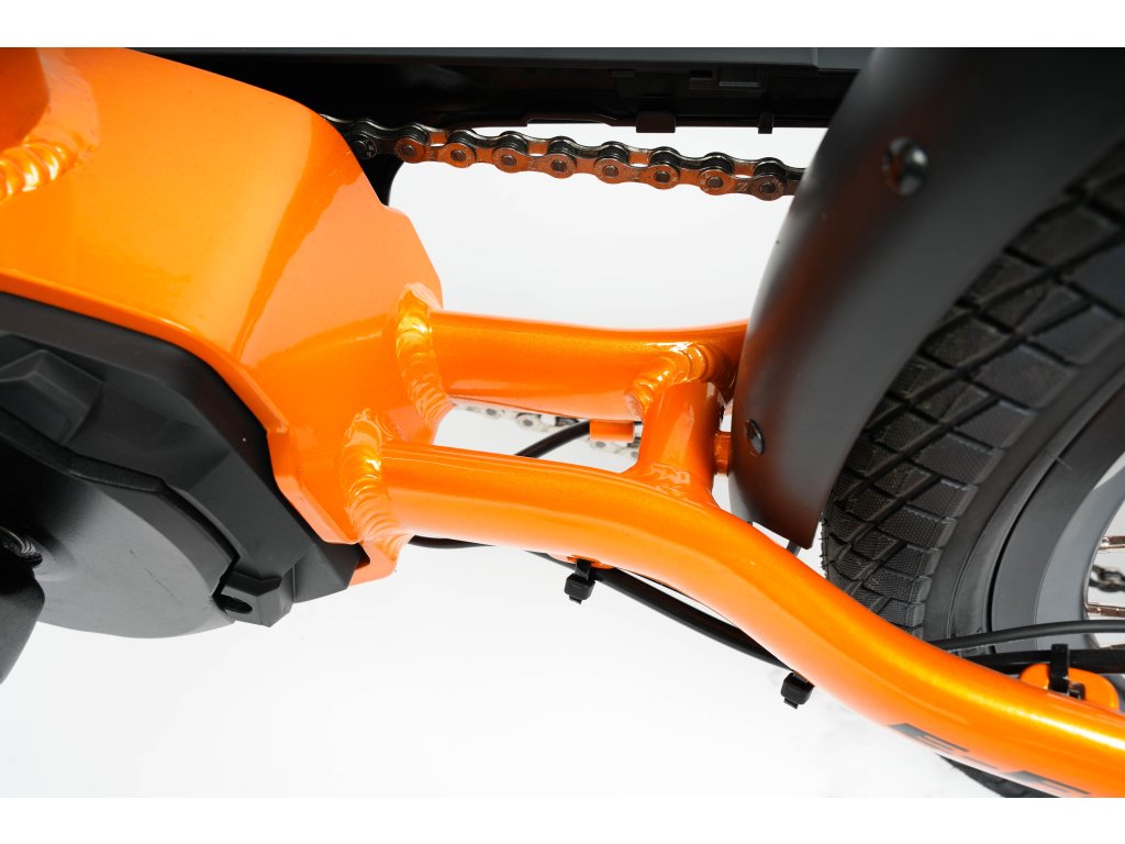 Rama roweru wykonana jest z aluminium, dzięki czemu rower, jak na rower elektryczny, jest bardzo lekki. Waży jedynie 20 kg ( + 3 kg akumulator). Złożony składak jest kompaktowy – jego wymiary w stanie złożonym to 93 cm × 72 cm × 49 cm (długość × wysokość × szerokość). Bez problemu można go załadować do dowolnego środka komunikacji miejskiej, znieść po schodach lub włożyć do samochodu. Pomimo niewielkiej wagi aluminium, rama roweru jest bardzo wytrzymała, dzięki czemu, nawet po latach jazdy, rower stale będzie wyglądał doskonale! W dodatku na ramę oferujemy dożywotnią gwarancję.