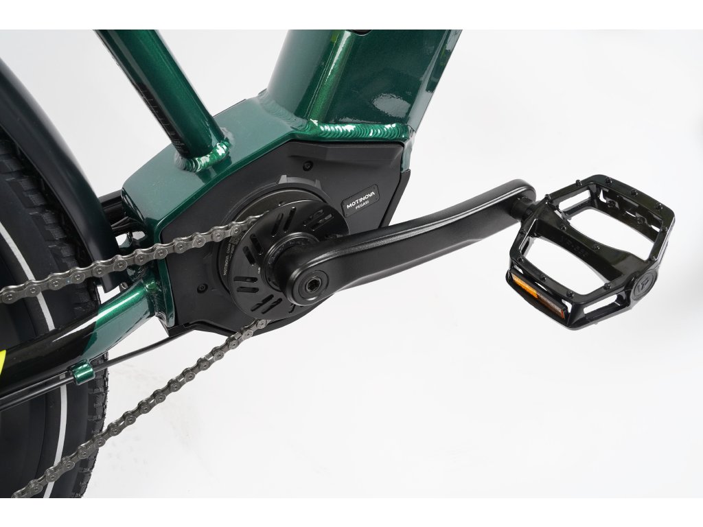 Jest wyposażony w silnik centralny MOTINOVA PEGASI o mocy nominalnej 250 W z możliwością wspomagania do 25 km/h, dzięki któremu nawet jazda pod górkę lub z bagażem będzie dla ciebie przyjemnym odpoczynkiem. Mocny napęd z maksymalnym momentem obrotowym 80 Nm umożliwia pokonywanie długich tras bez większego wysiłku. W dodatku na pewno docenisz, że na silniki MOTINOVA dajemy aż trzyletnią gwarancję.