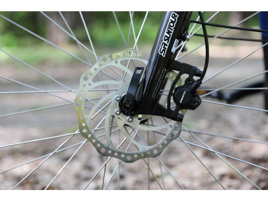 - Skuteczne hydrauliczne hamulce tarczowe z krótką drogą hamowania.